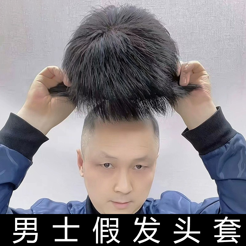 男士假发短发真发帅气隐形头顶补发片自然轻薄透气脱发男士假发片