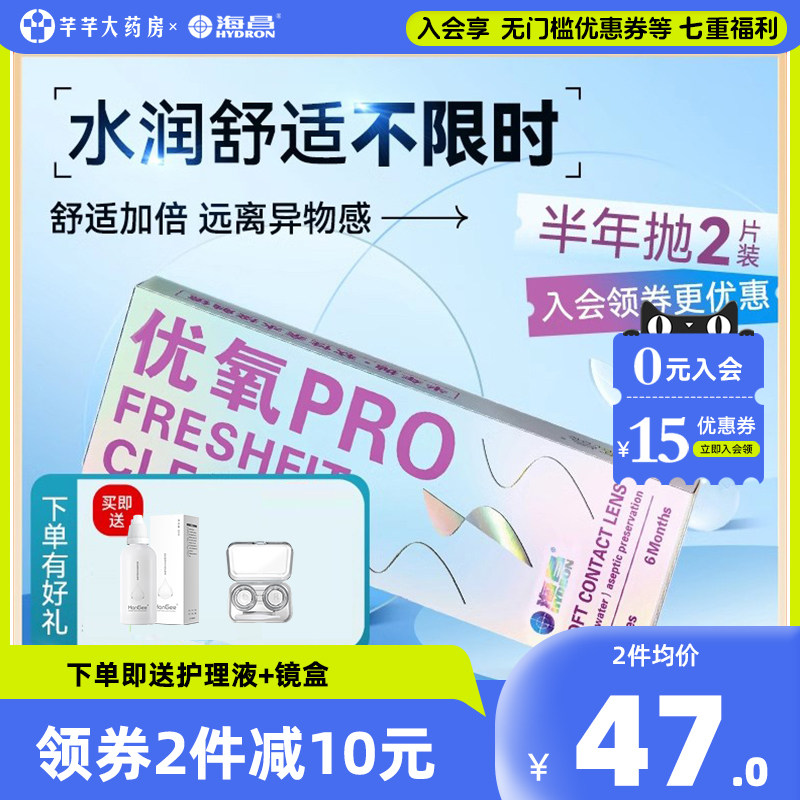 海昌优氧半年抛2片装隐形眼镜 近视盒透明片舒适隐型眼境官网正品