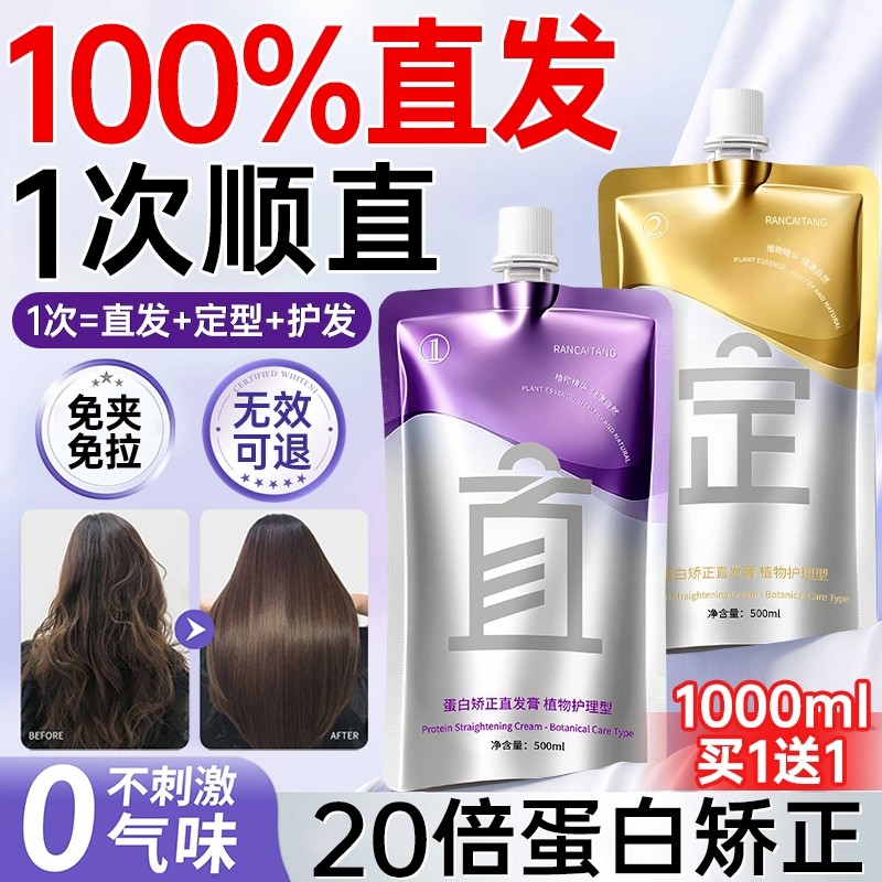 蛋白矫正直发膏免拉家用头发软化剂柔顺拉永久定型毛躁修复一梳直