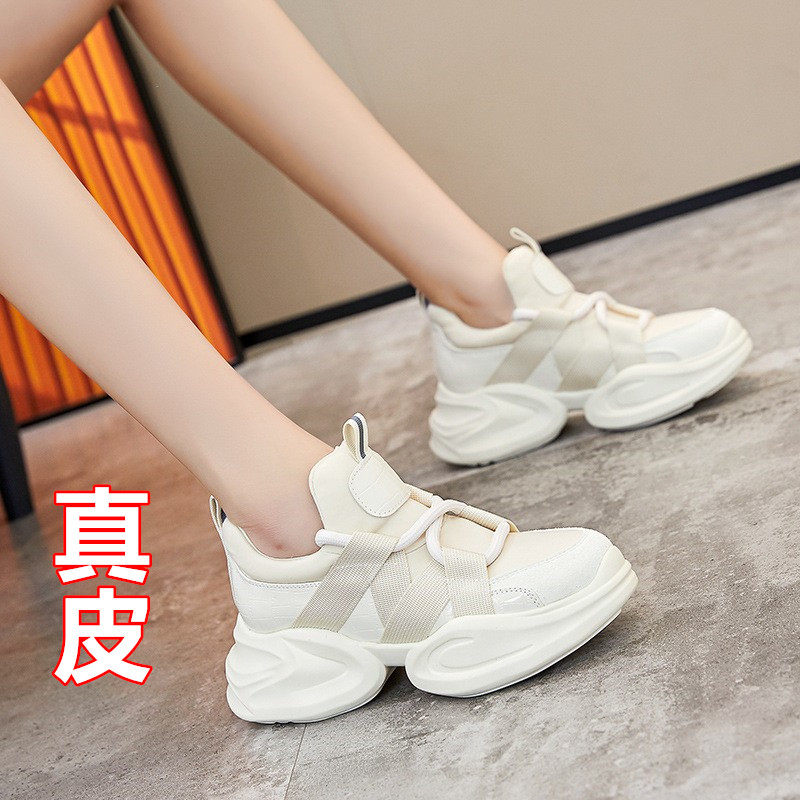 真皮老爹鞋女韩版2026春夏新款白色厚底内增高厚底休闲百搭运动鞋