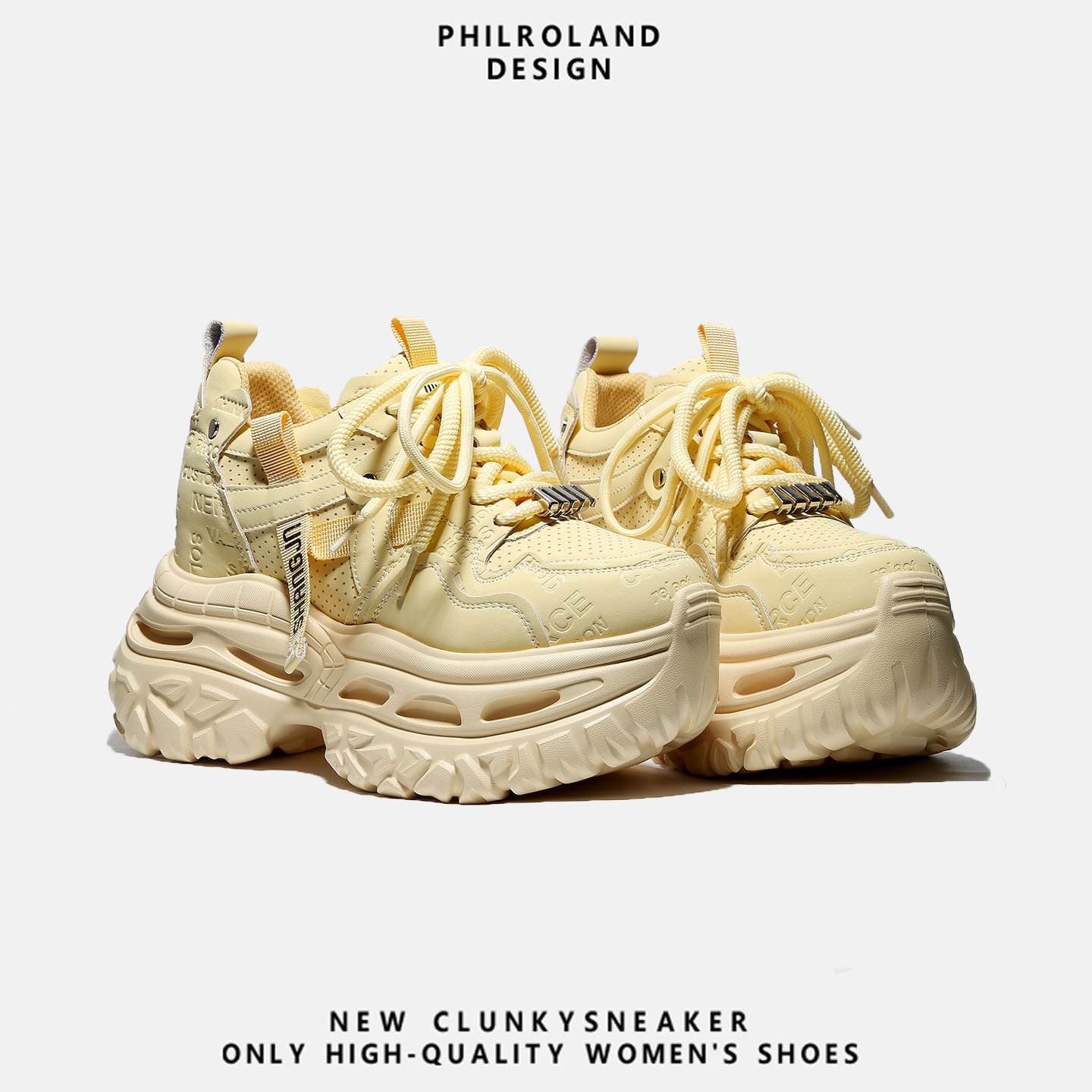 真皮内增高运动单鞋女2021新款春11cm百搭韩版厚底跑步超火老爹鞋