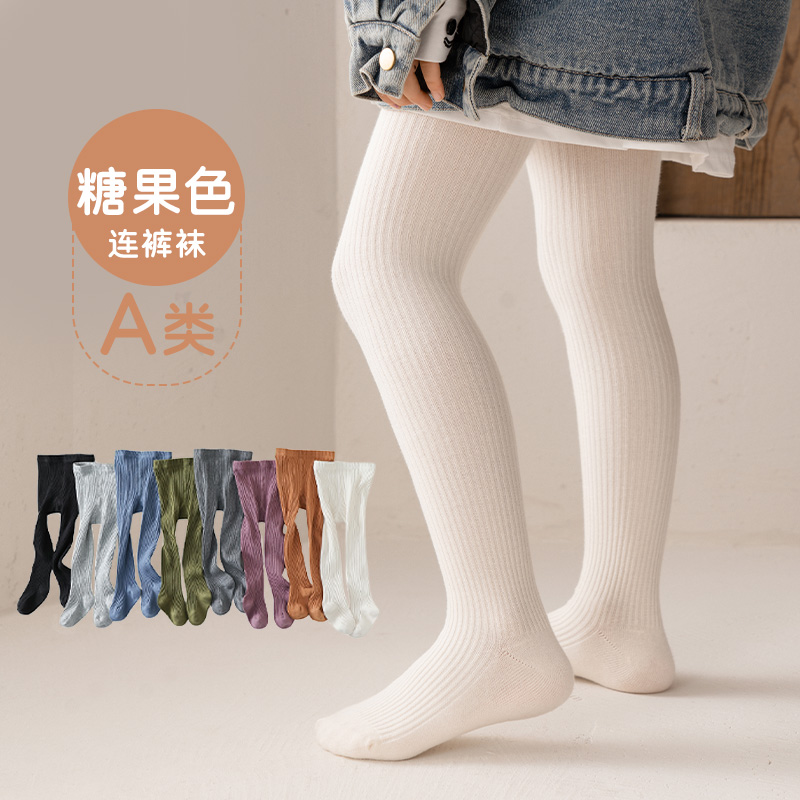 纳桔儿童连裤袜女童秋冬季加绒保暖大弹力打底袜纯色坑条连裤袜子