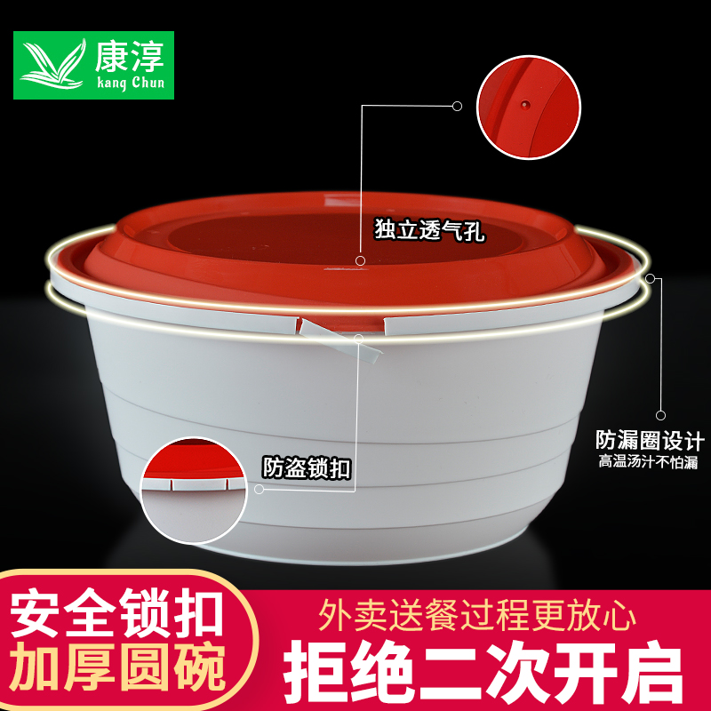 防盗锁扣一次性餐盒商用麻辣烫螺丝粉打包盒外卖快餐盒便当盒带盖