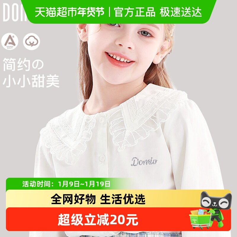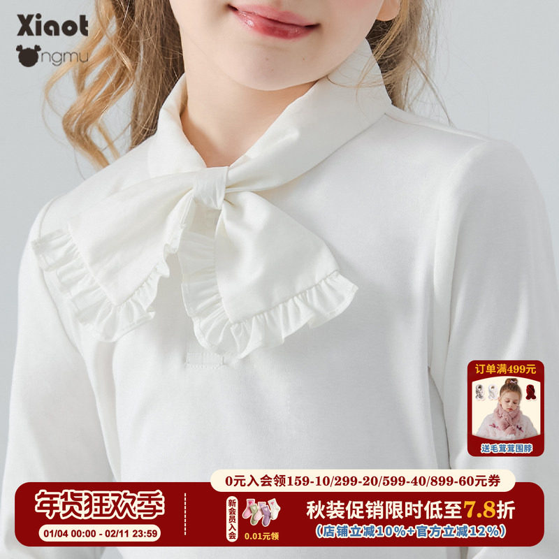 小童木 清新奶芙女童长袖T恤秋季2025新款白色蝴蝶领结女大童上衣