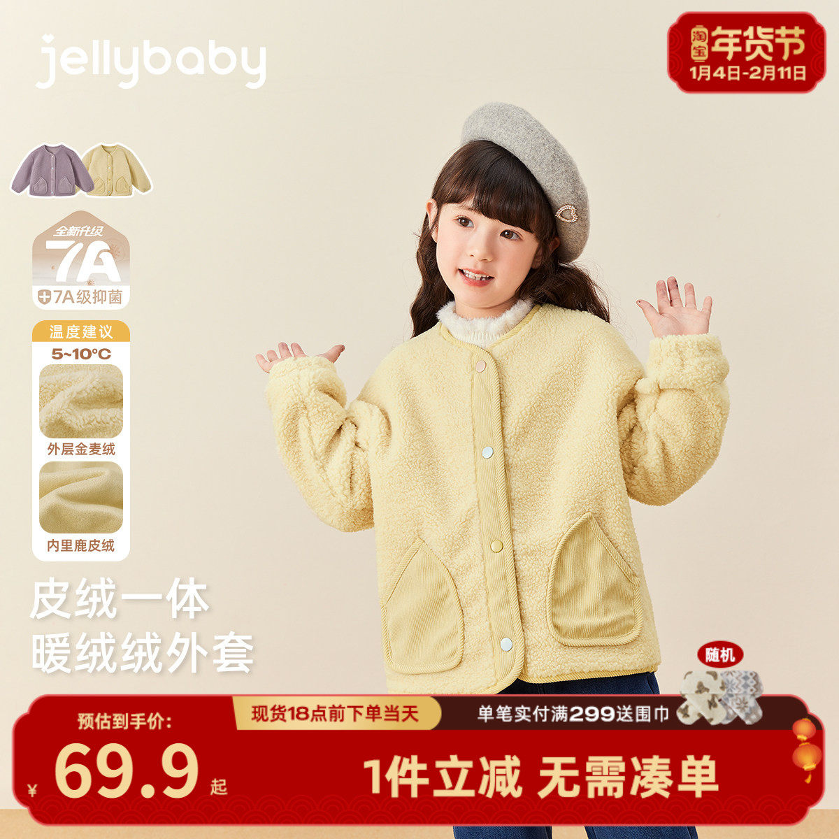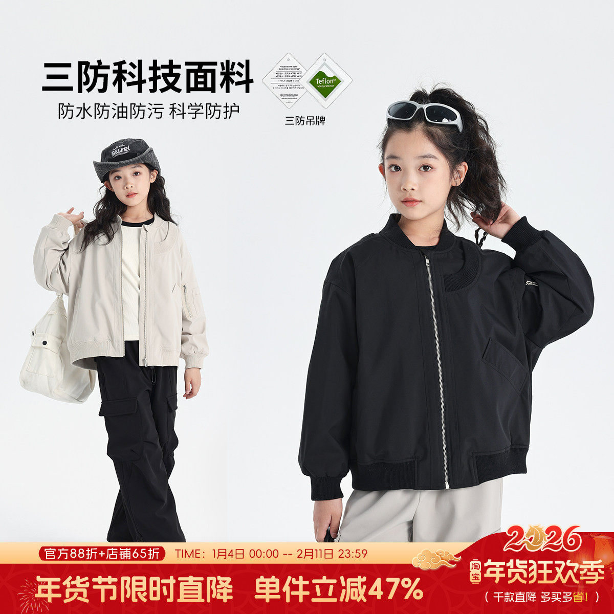 [抗菌远红外]女童秋冬外套宝宝双面加绒女大童上衣儿童2026款春装