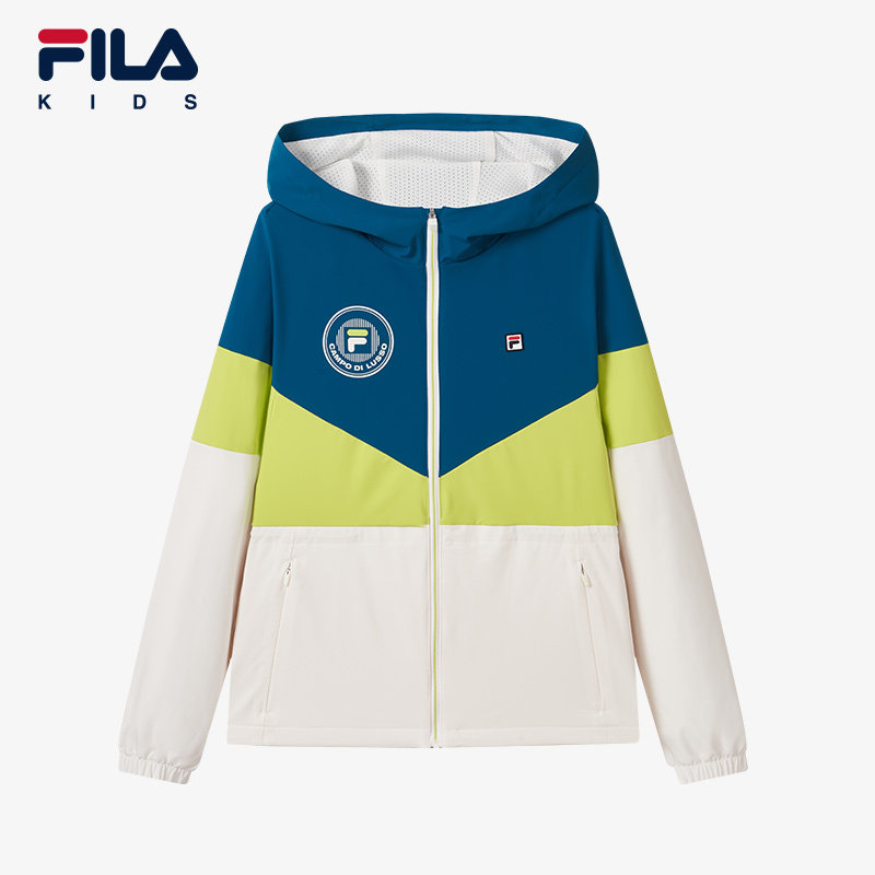 FILA斐乐童装女大童上衣春秋季新款儿童连帽网球运动梭织外套防风