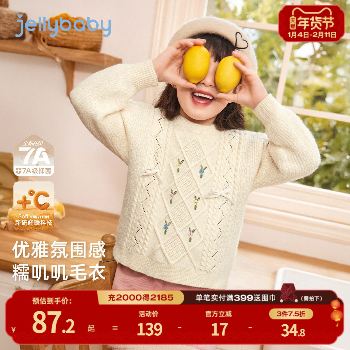 [抗菌远红外]针织衫女童秋冬宝宝长袖圆领新款女大童上衣儿童毛衣