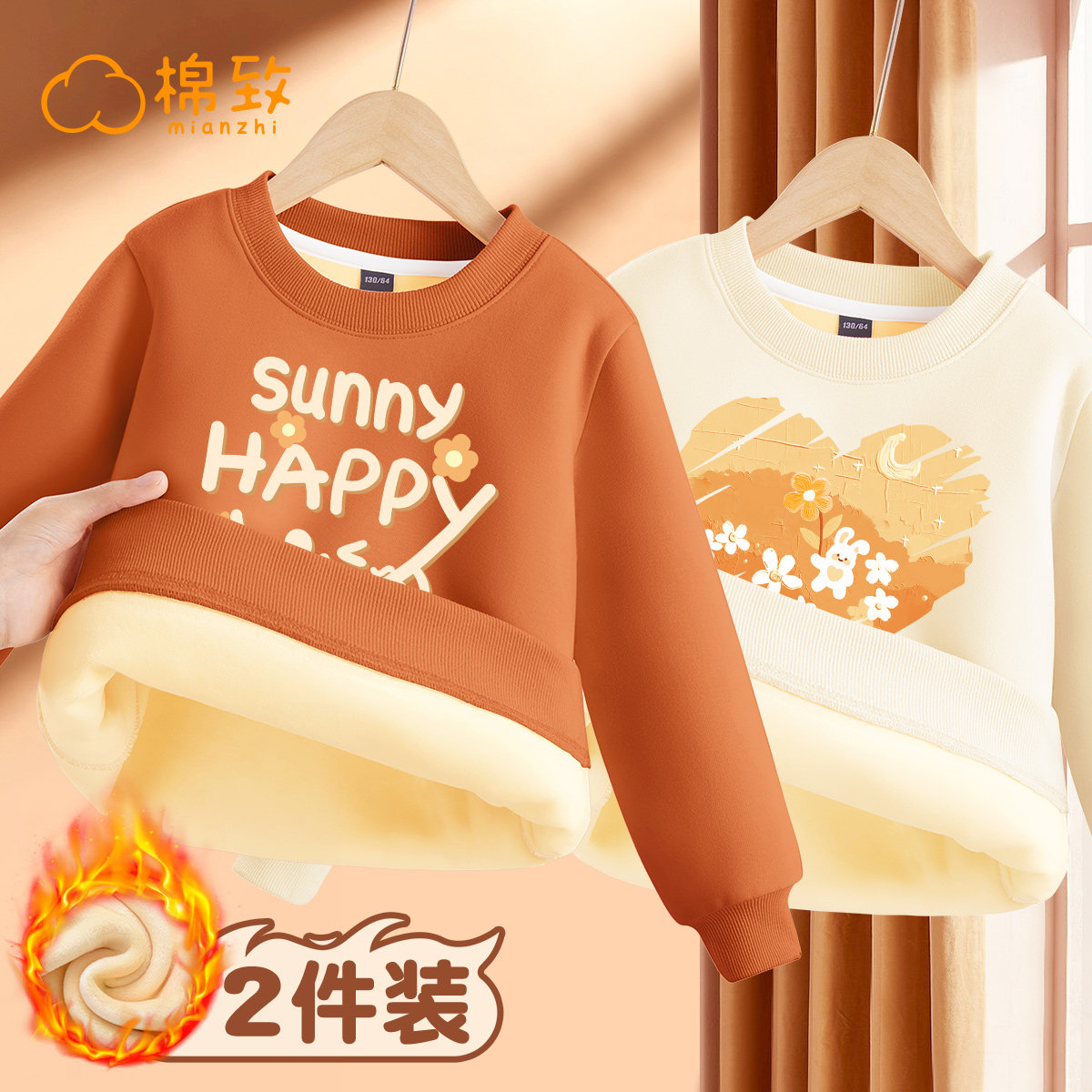 棉致女童加绒卫衣秋冬2025新款一体绒加厚女大童上衣冬季儿童长袖