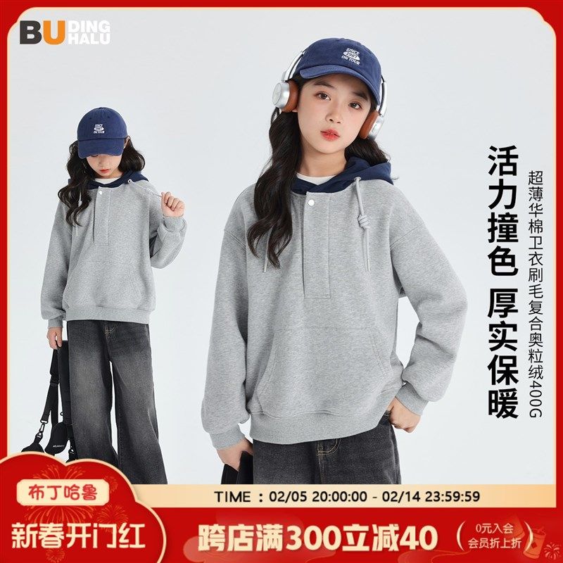 沫沫家童装冬装女大童上衣2024秋冬季新款青少年百搭连帽长袖卫衣