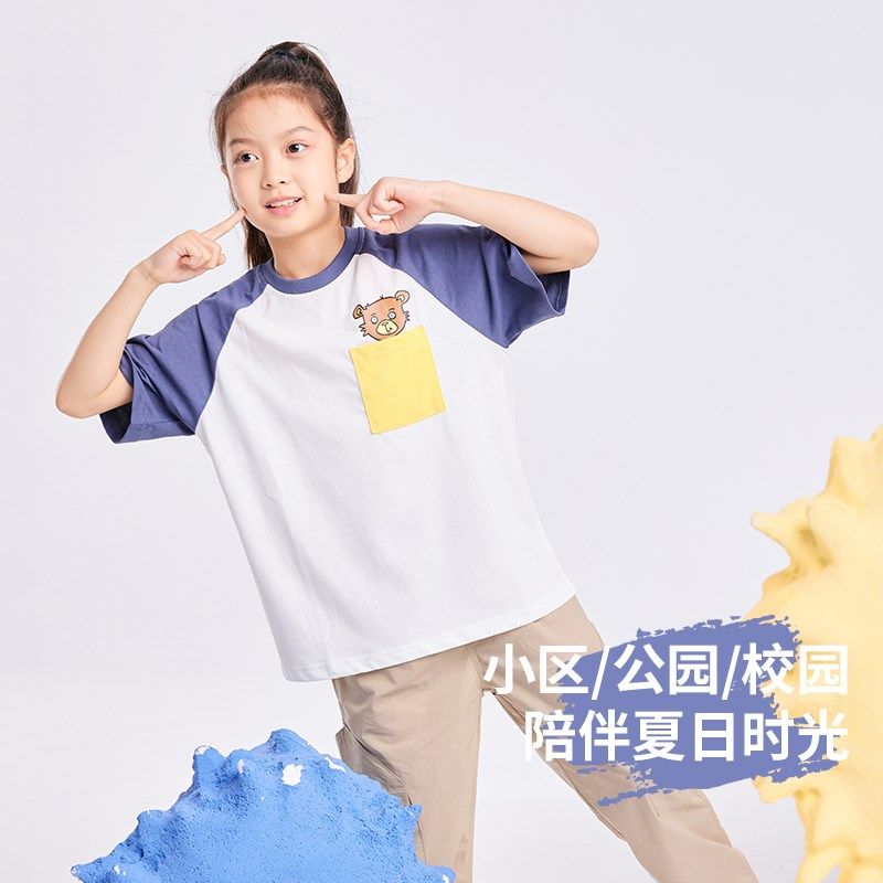 七彩摇篮儿童短袖t恤纯棉男童夏装2024新款撞色拼接女大童上衣服