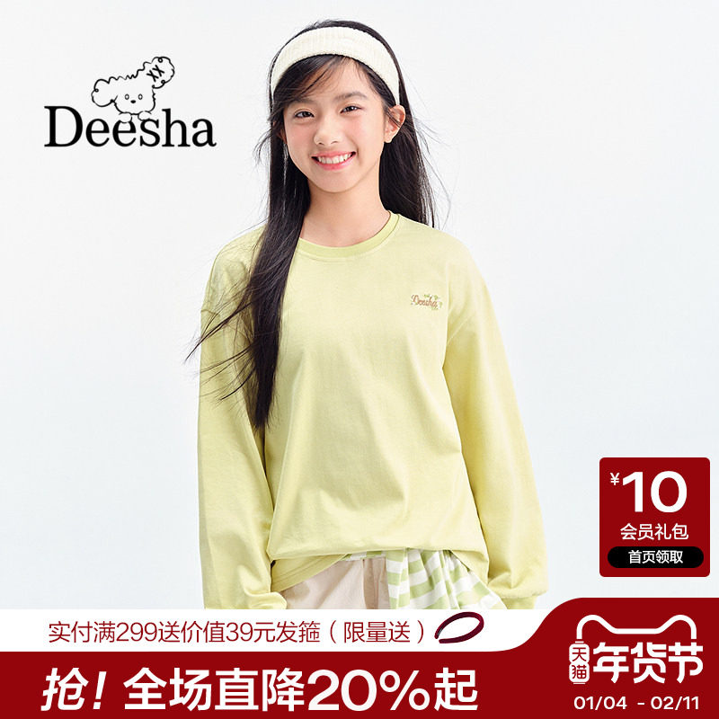 笛莎官方女大童上衣2025秋新款青少年初中生时尚双纱爽滑单面T恤