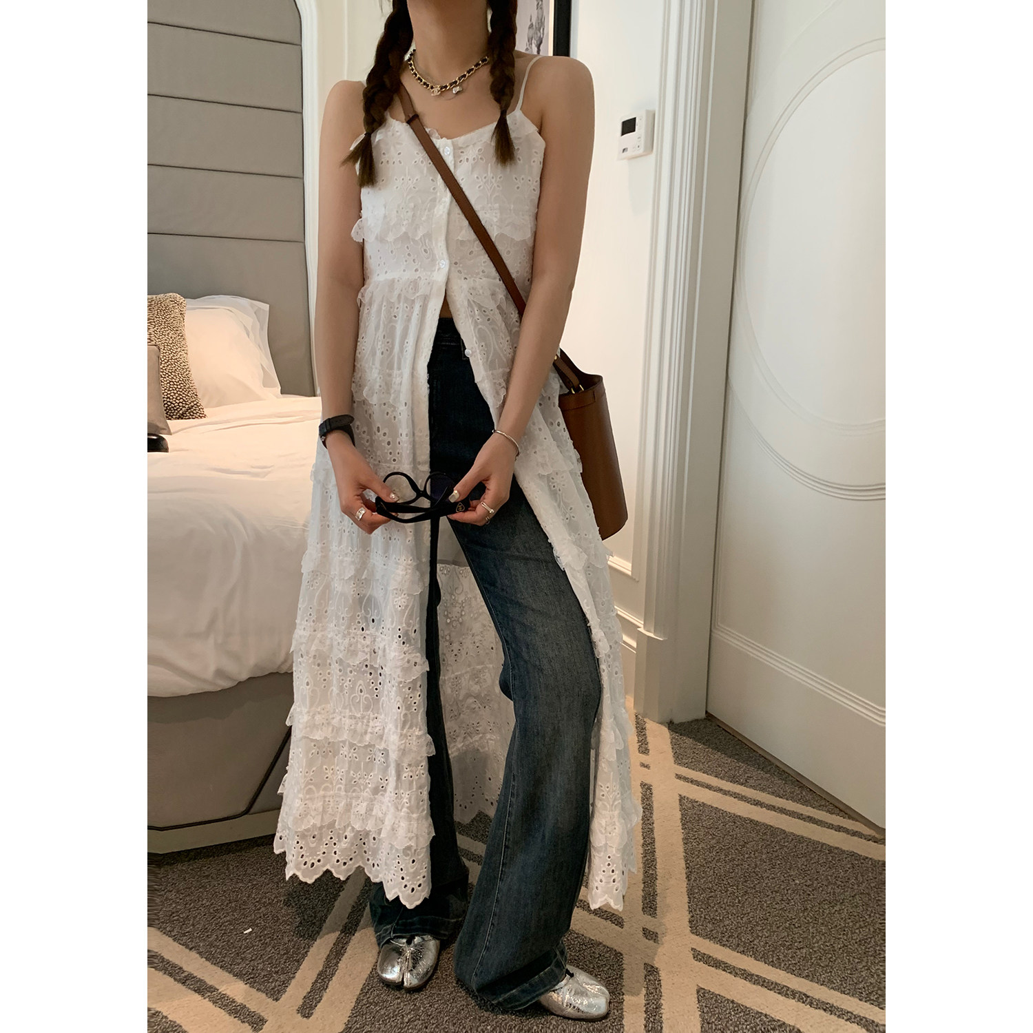 - 无袖连衣裙高腰长裙