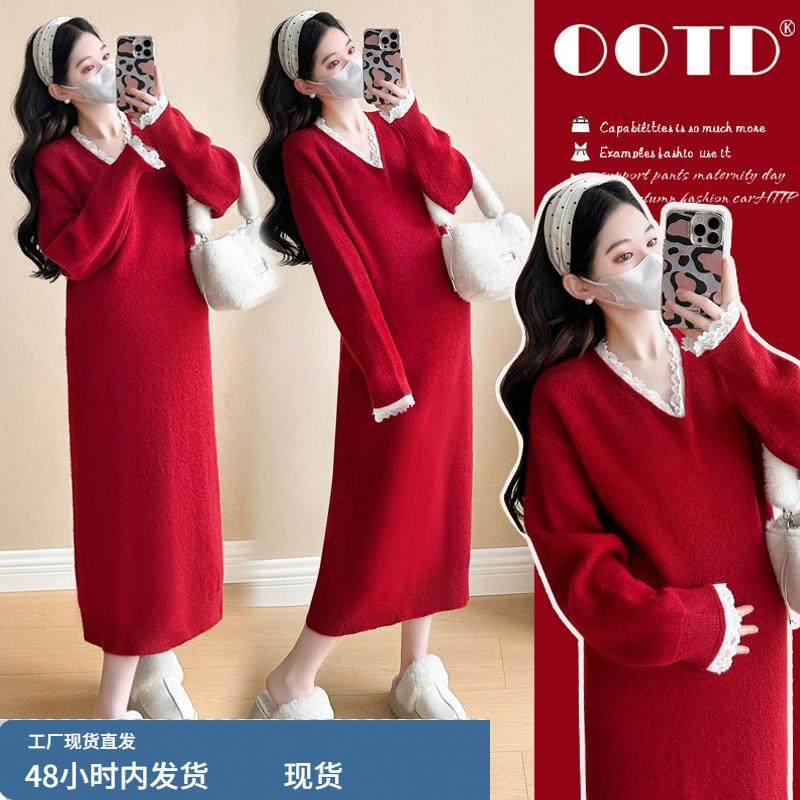 - 秋装针织连衣裙女长袖
