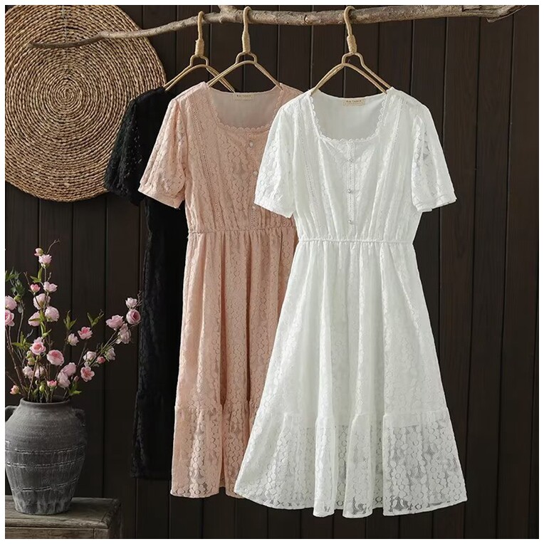 2026年夏季新款韩版时尚气质显瘦百搭收腰蕾丝连衣裙女设计感小众