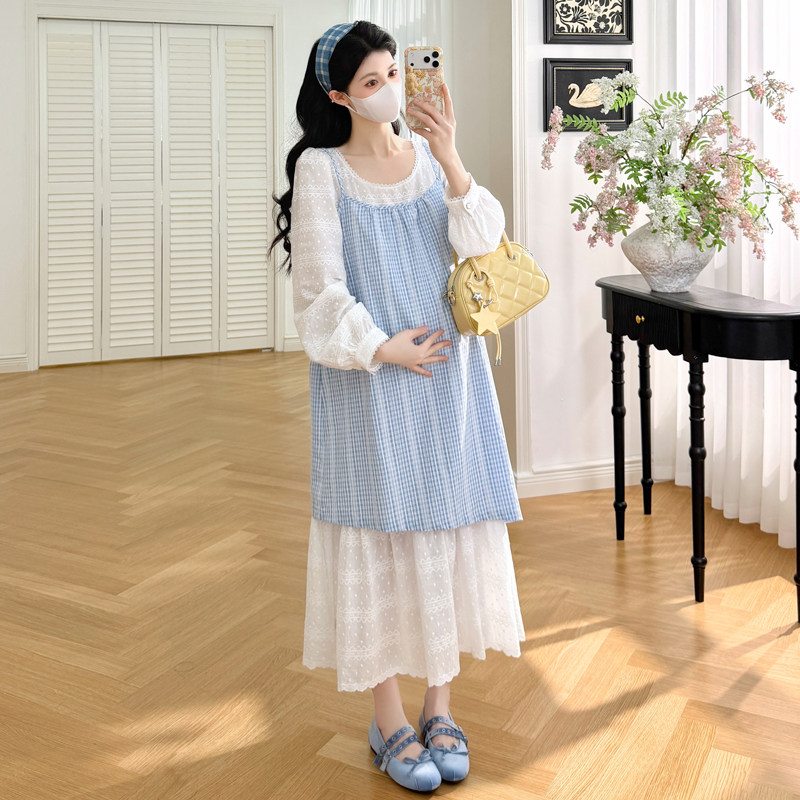今年流行刺绣工艺蕾丝仙女韩版时尚宽松中长款两件套孕妇连衣裙子