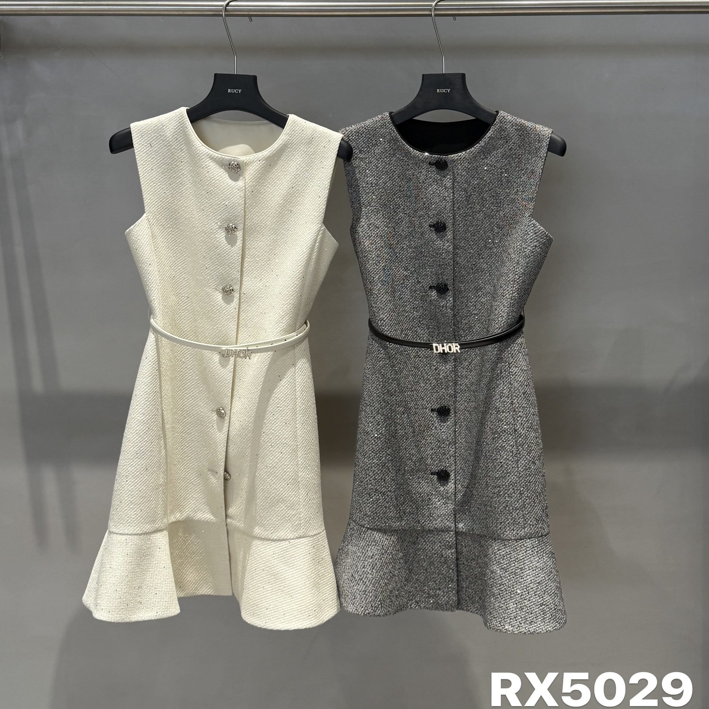 小香风单排扣圆领背心连衣裙RUCY系带收腰荷叶边下摆包臀鱼尾短裙