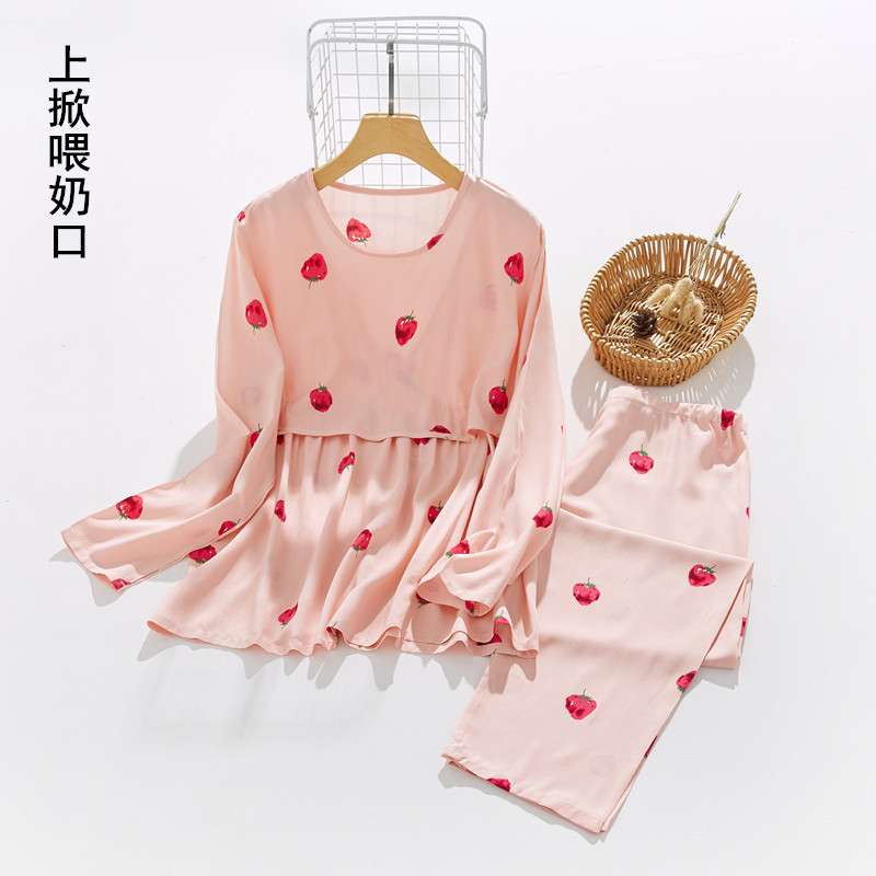 孕妇夏季绵绸睡衣女薄款纯棉绸长袖人造棉月子服家居服套装哺乳衣