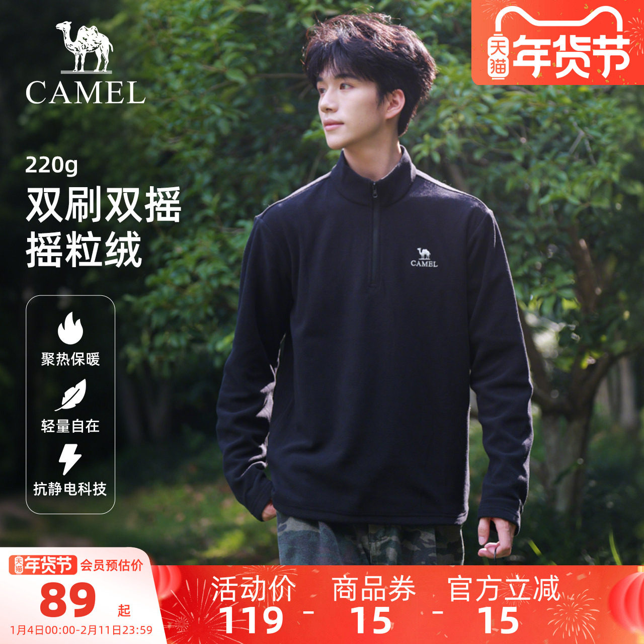 骆驼户外抓绒衣男立领防风薄绒保暖冲锋衣内胆运动外套摇粒绒卫衣
