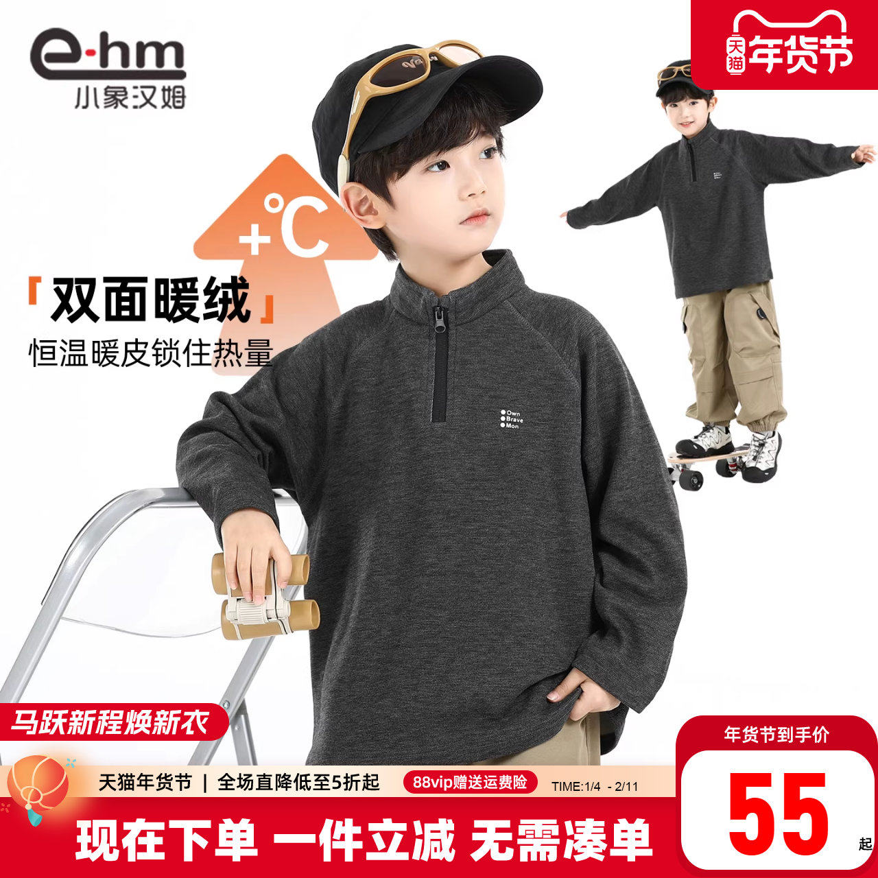 小象汉姆童装男童德绒打底衫秋冬卫衣拉链立领内搭2026春装新款