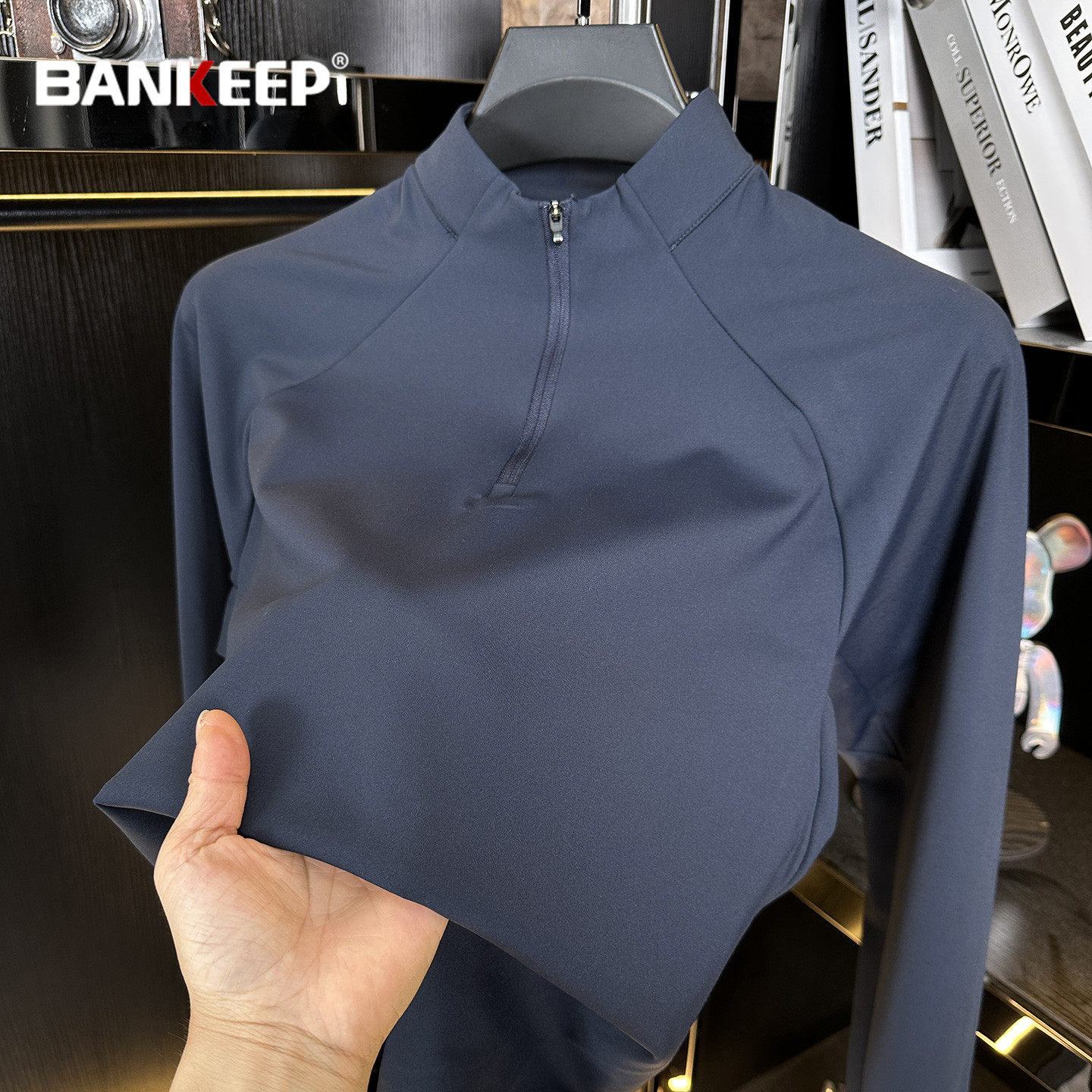秋冬新款加绒肌理立领半拉链卫衣男士高档潮流宽松百搭休闲打底衫