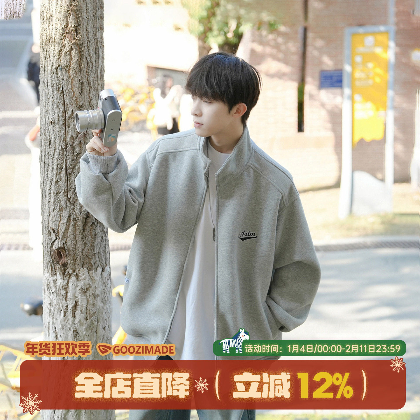 - 开衫卫衣男连帽修身