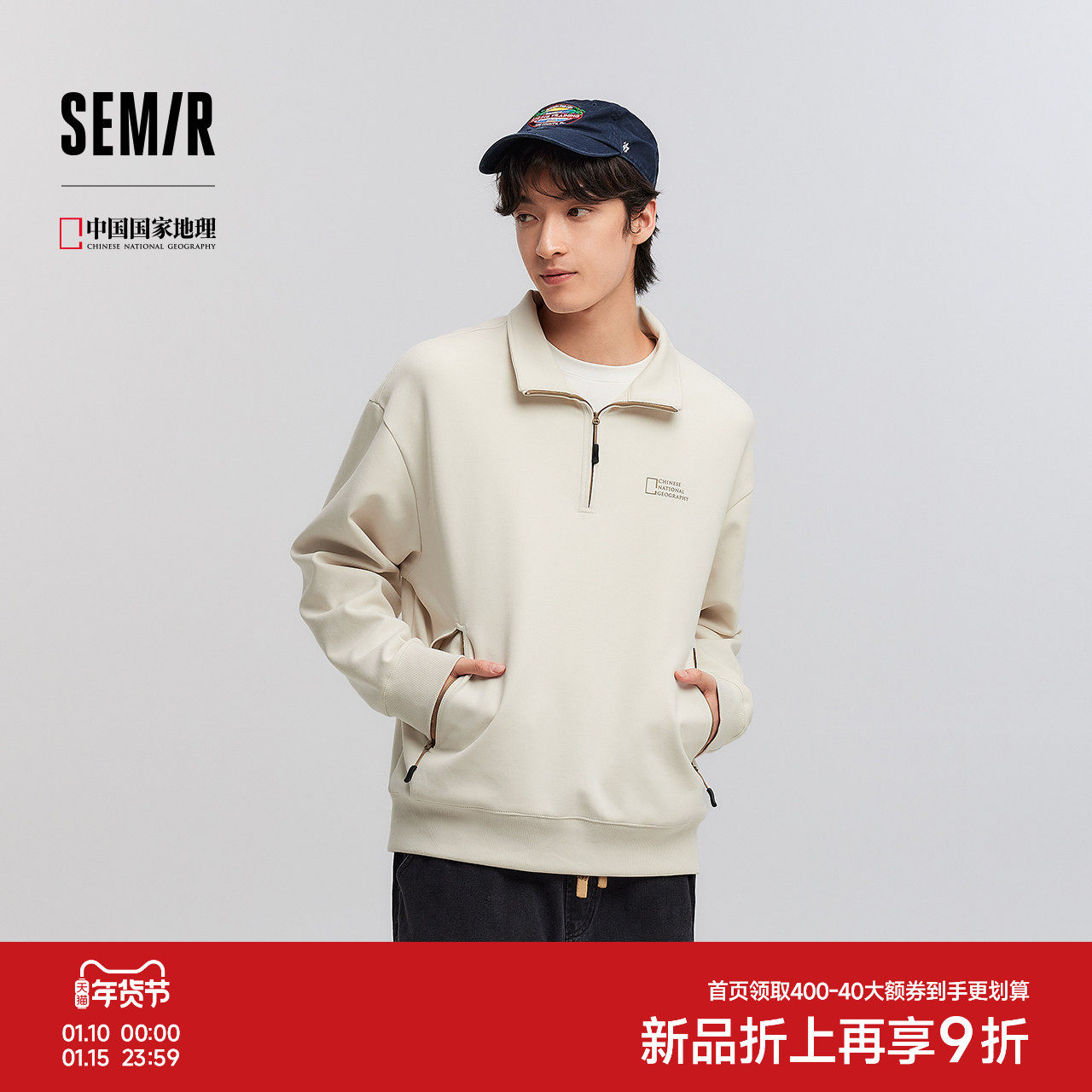 森马半开襟卫衣男2025冬季新款保暖摇粒绒长袖户外肌理感立领上衣