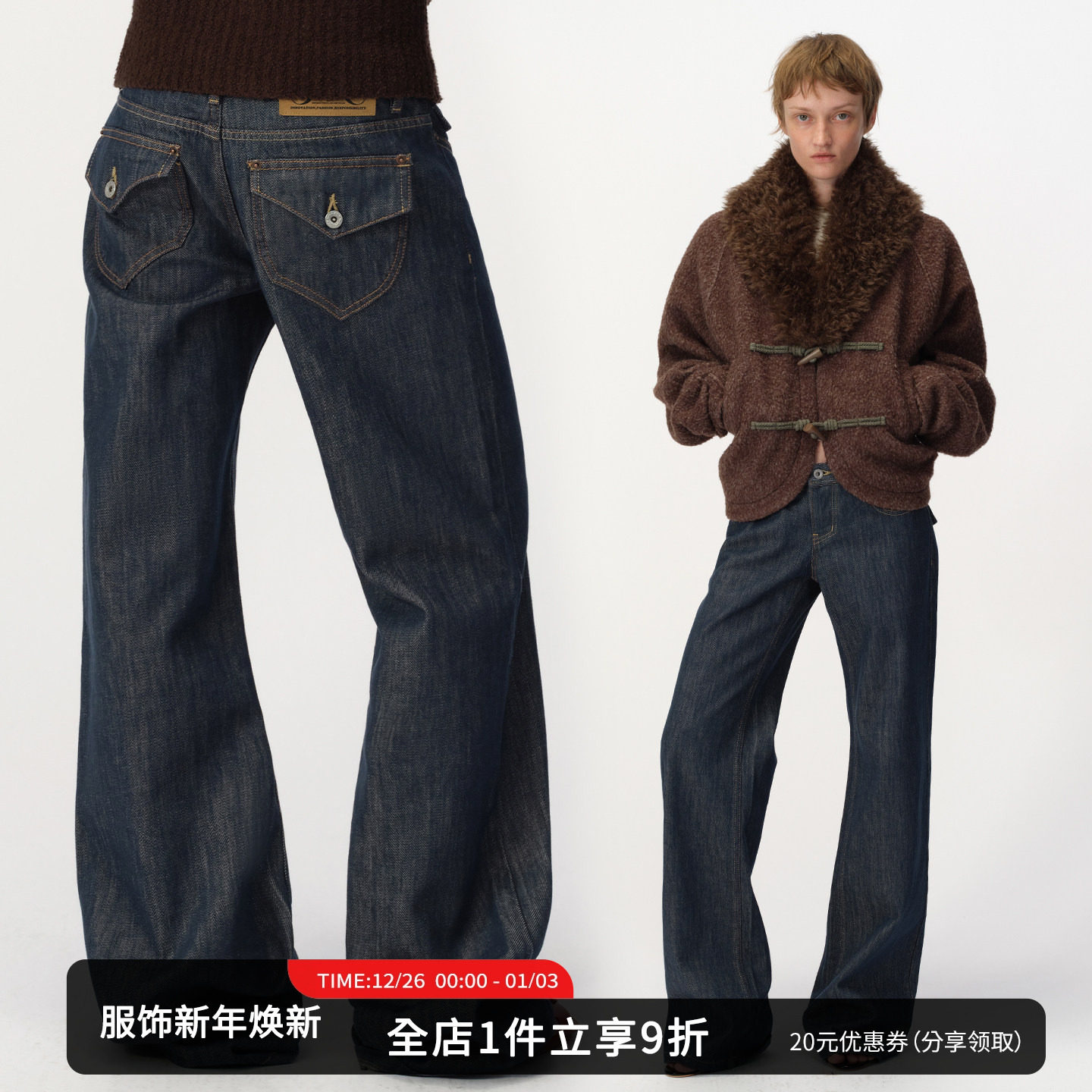 【69/件】EPTISON牛仔裤女2025冬季新款复古直筒宽松设计感休闲裤