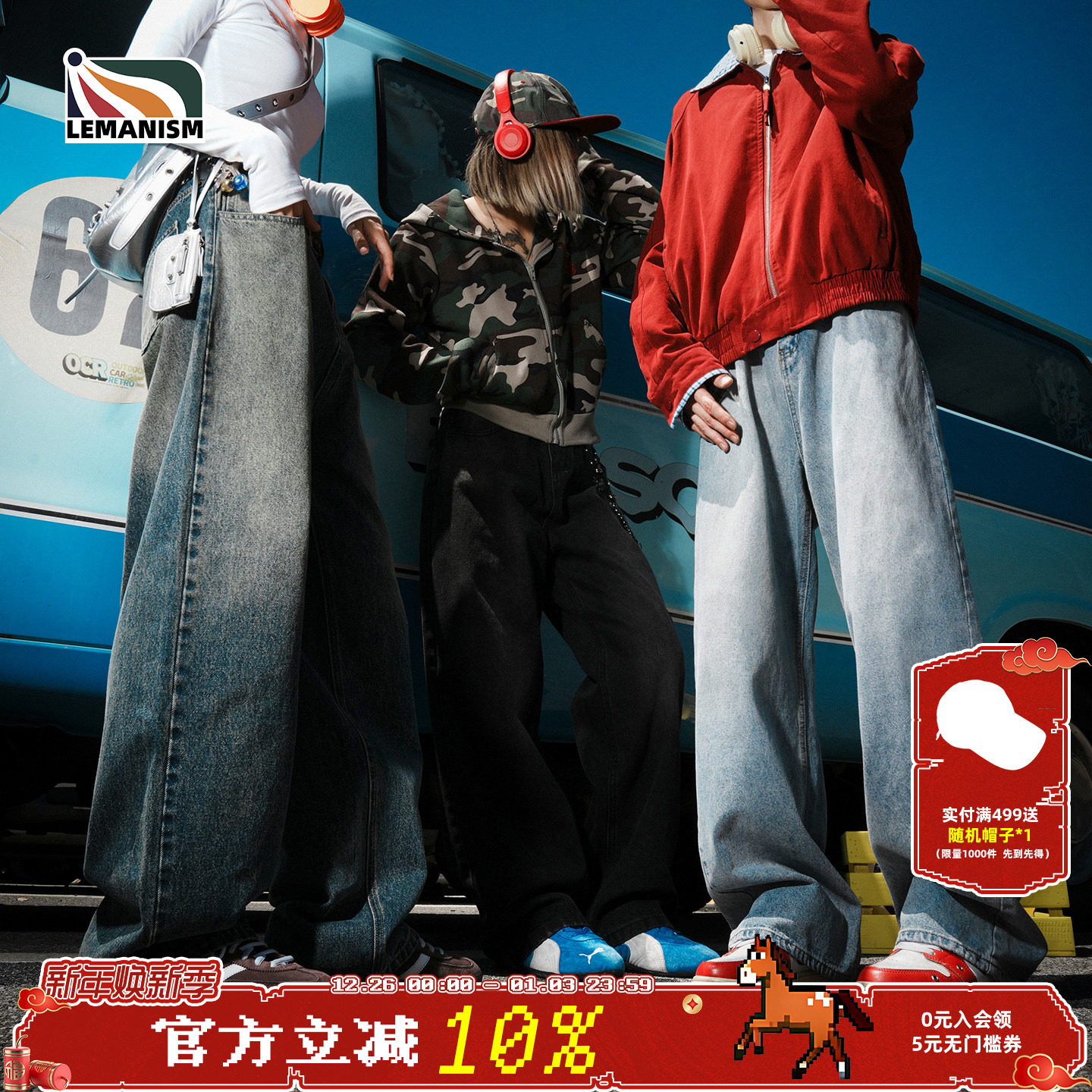 lemanism美式黑色水洗直筒牛仔裤男款2025新款春秋宽松休闲裤子女