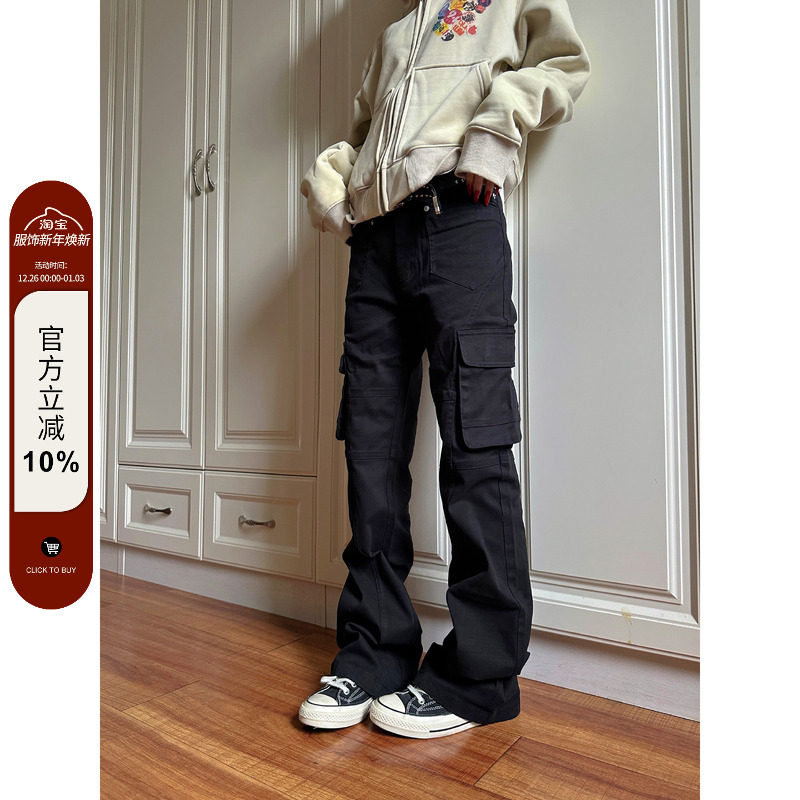 F383 直筒微喇工装裤男女宽松显瘦美式复古cleanfit休闲牛仔裤子
