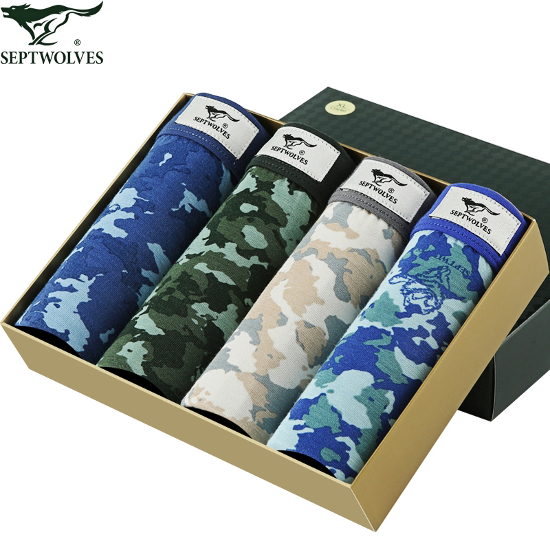 七匹狼男内裤男士平角裤透气莫代尔四角裤头中腰迷彩印花时尚潮流