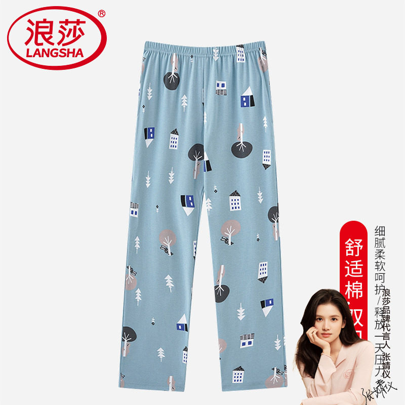 浪莎新款睡裤女款纯棉居家裤宽松大码家居裤春秋四季长裤全棉单裤