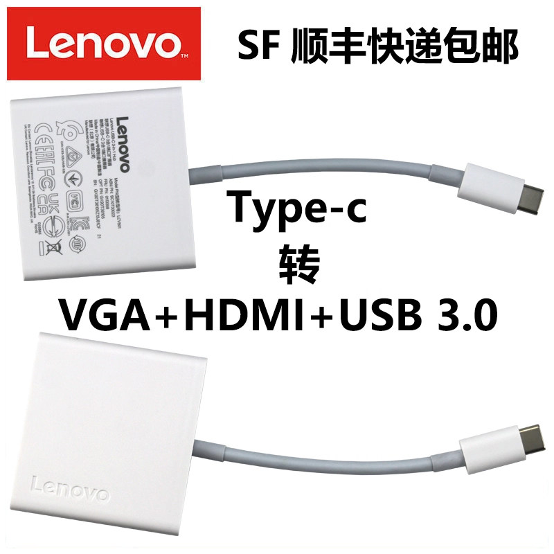 Lenovo联想原装 USB-C Type-c转VGA+HDMI+USB 3.0 转接器 转接口 转接线