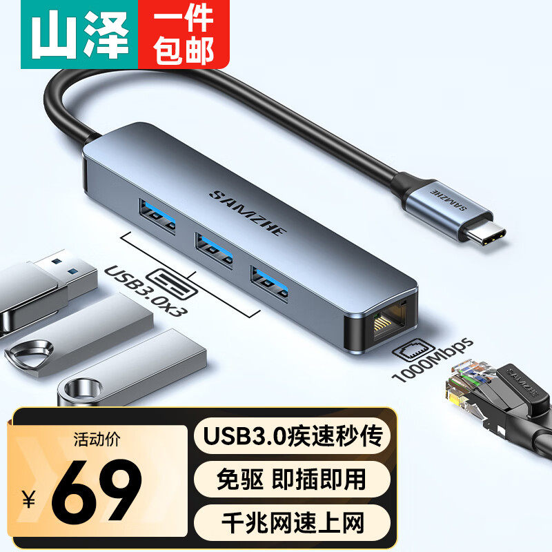 山泽type-c扩展坞分线拓展器usb转换器手机转接vga网线hdmi转接口