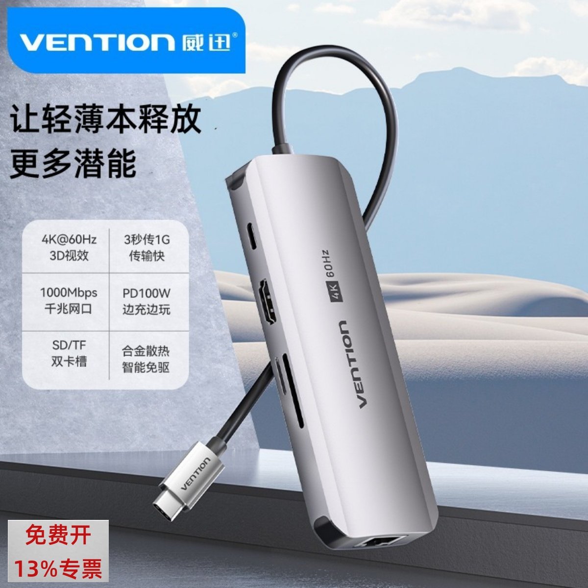支持部分手机平板笔记本台式机电脑扩展坞type-c转换器C口转HDMI网口VGA口USB读卡器等不同接口的设计网口VGA