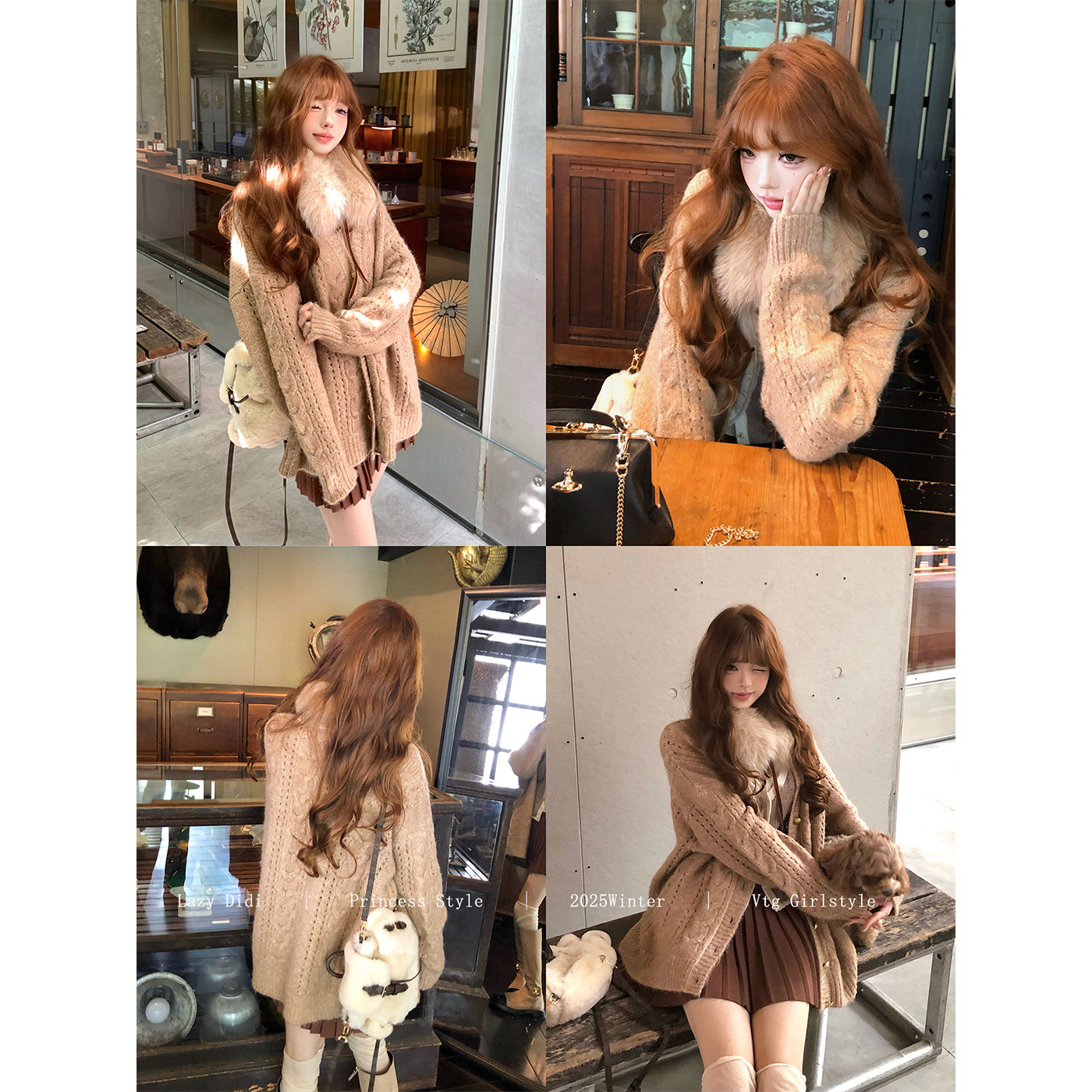 安璃 美拉德慵懒感灯笼袖奶咖色毛衣开衫柔软中长款毛感秋冬新款