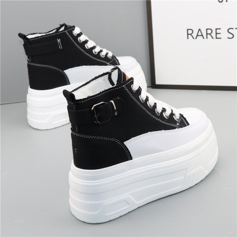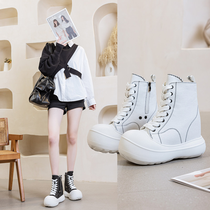 - 厚底高帮帆布鞋女