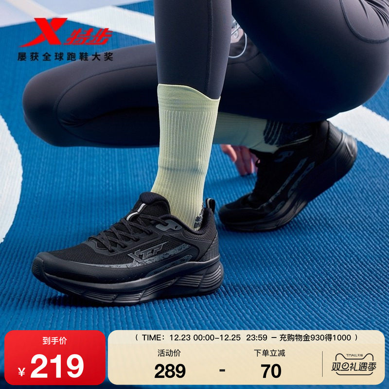 特步柔立方丨跑步鞋男鞋秋全黑商务鞋运动鞋子减震跳绳鞋跑鞋女鞋