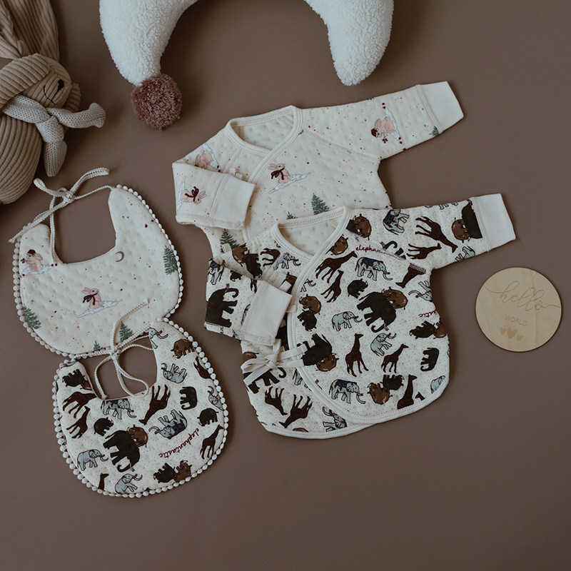 婴姿新生婴儿儿衣服半背衣夹棉秋冬季初生宝宝纯棉上衣保暖和尚服