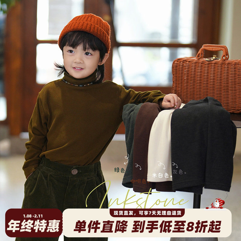 儿童半高领打底衫男童纯棉插肩长袖T恤女童内搭秋衣宝宝休闲上衣