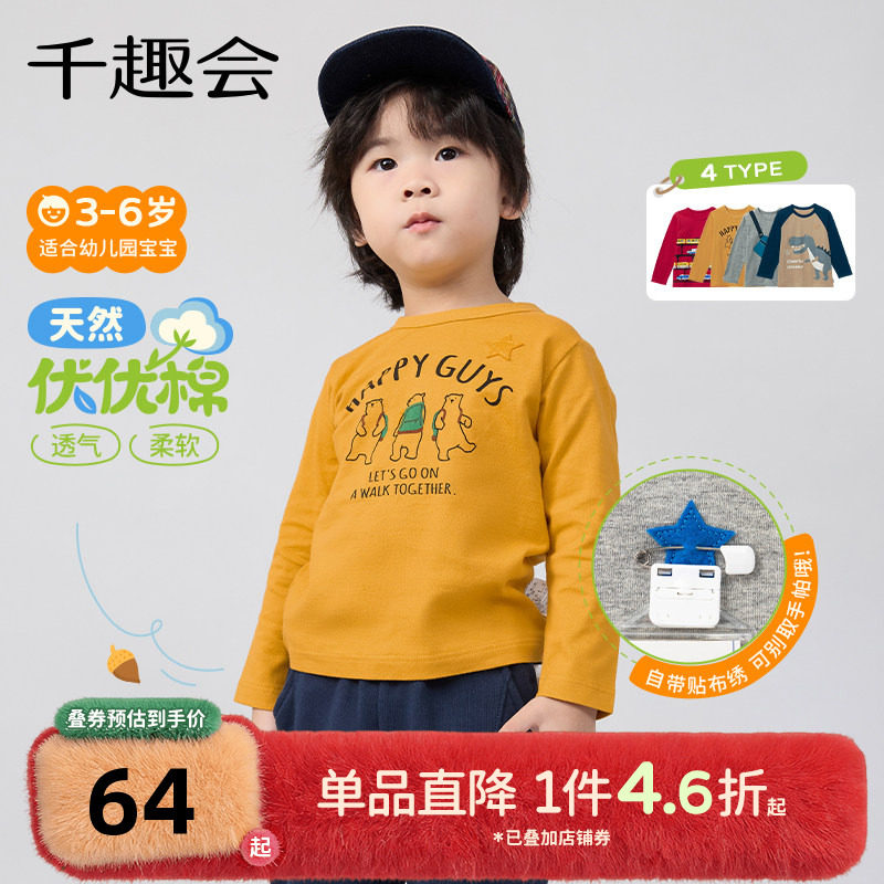 千趣会童装25年秋季长袖T恤工程车卡通男童幼儿园宝宝纯棉上衣