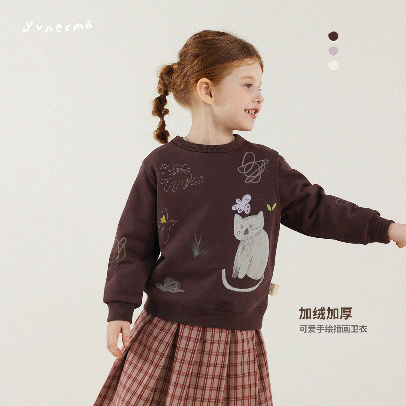 允儿妈女童冬季新款磨毛手绘插画卫衣宝宝纯棉上衣儿童加厚长袖潮