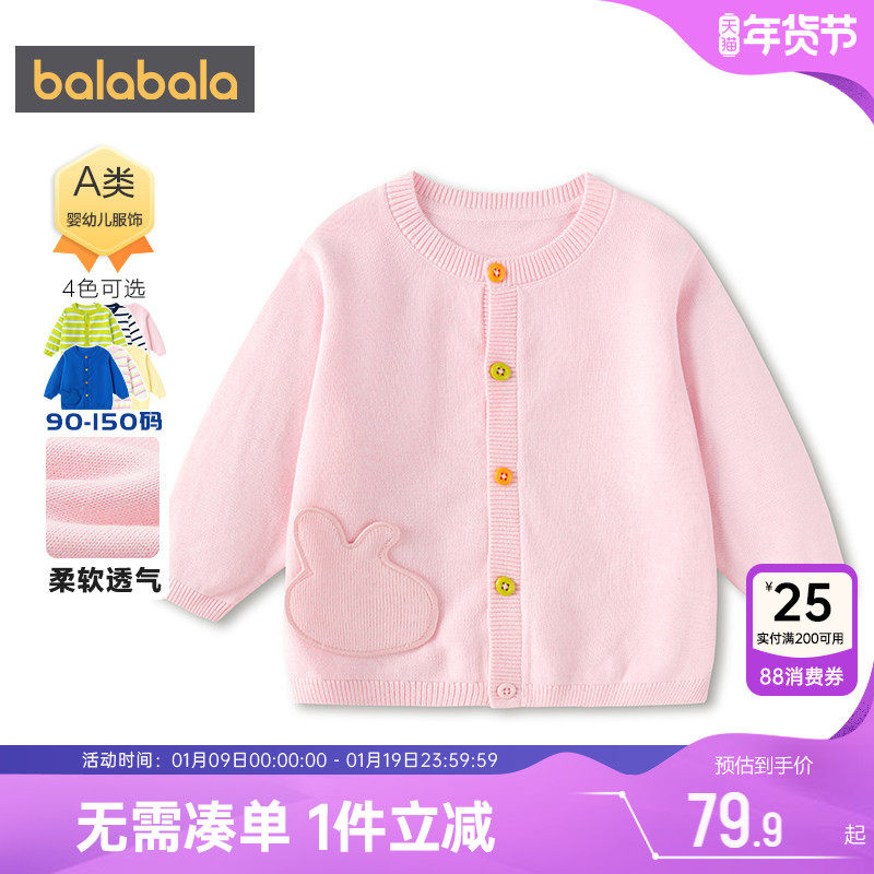 巴拉巴拉儿童针织衫外套男童女童开衫毛衣春秋款童装宝宝纯棉上衣