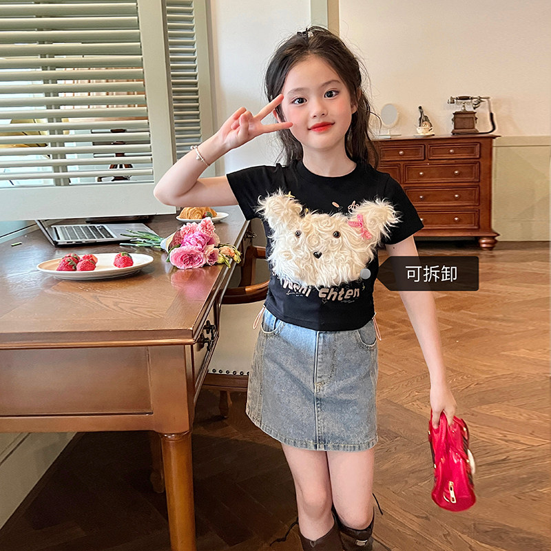 栀了成长记童装女童可爱立体小狗短袖T恤夏儿童宝宝纯棉上衣时髦