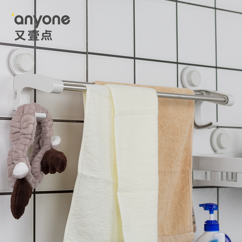 卫生间浴室置物架毛巾架免打孔吸壁式不锈钢浴巾架双杆晾挂毛巾杆