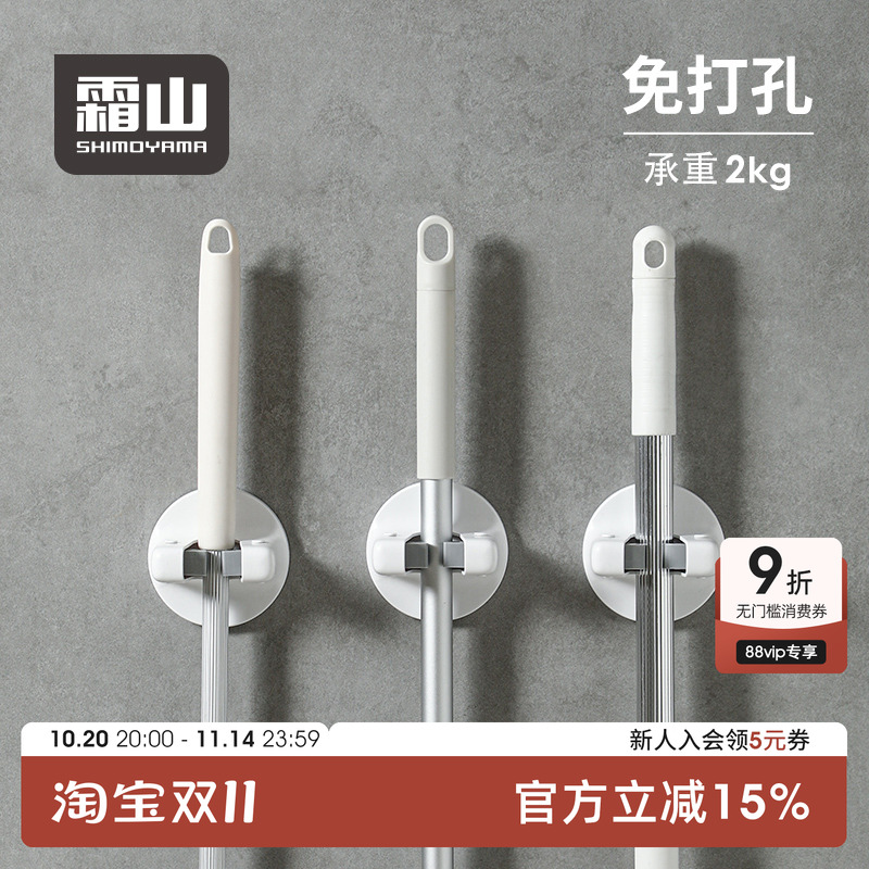霜山吸壁式拖把夹卫生间壁挂无痕粘胶免打孔置物架粘钩可承重2kg