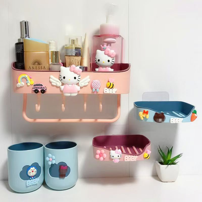 创意可爱卫生间置物架壁挂浴室置物架免打孔卡通吸壁式卫浴收纳架