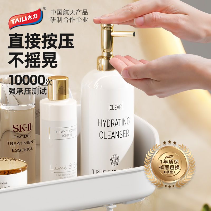 太力卫生间吸盘置物架壁挂浴室置物架免打孔吸壁式卫浴收纳三角架