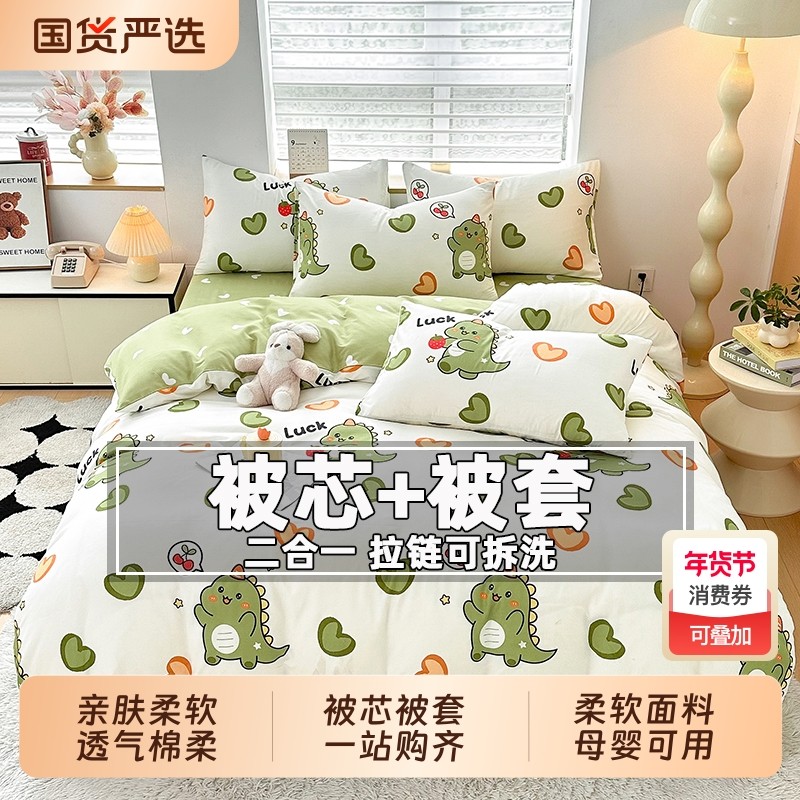 冬被芯被套二合一套装拉链可拆洗棉被学生宿舍单人被子非全棉纯棉