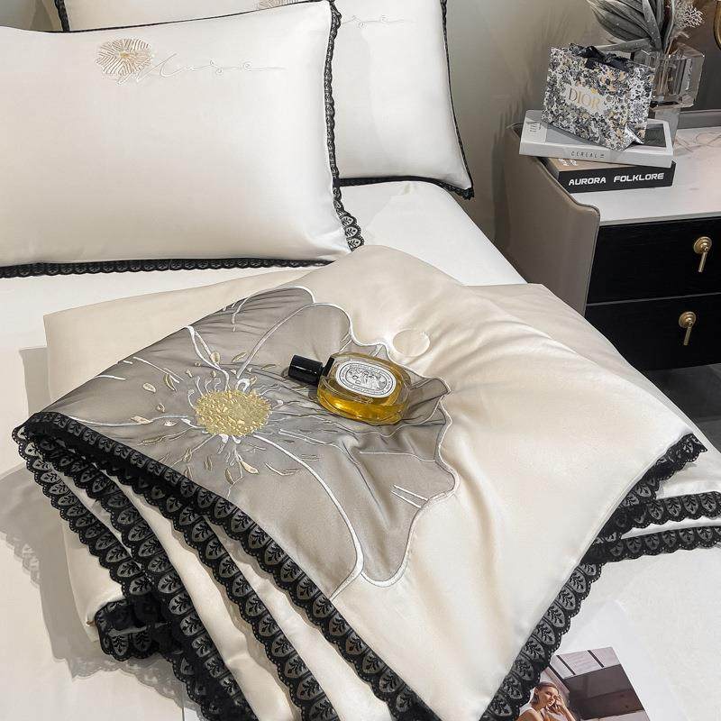 2025新款水洗真丝贴布绣花花边夏被三件套可机洗学生宿舍单人被子