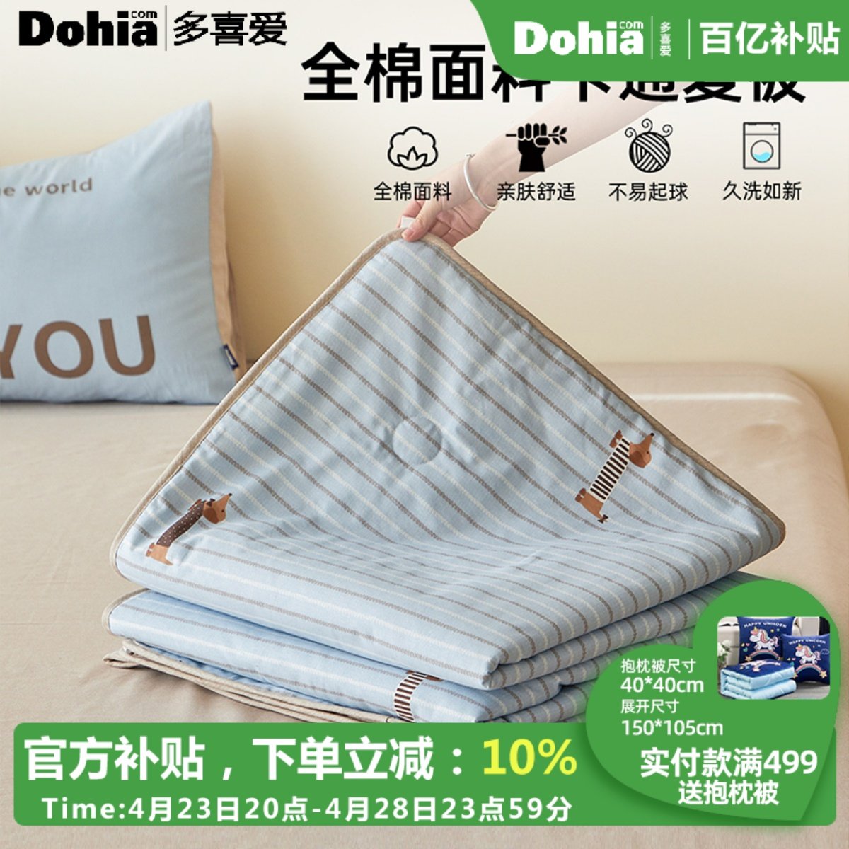 多喜爱全棉可机洗夏被卡通纯棉夏凉被学生宿舍单人被子双人空调被